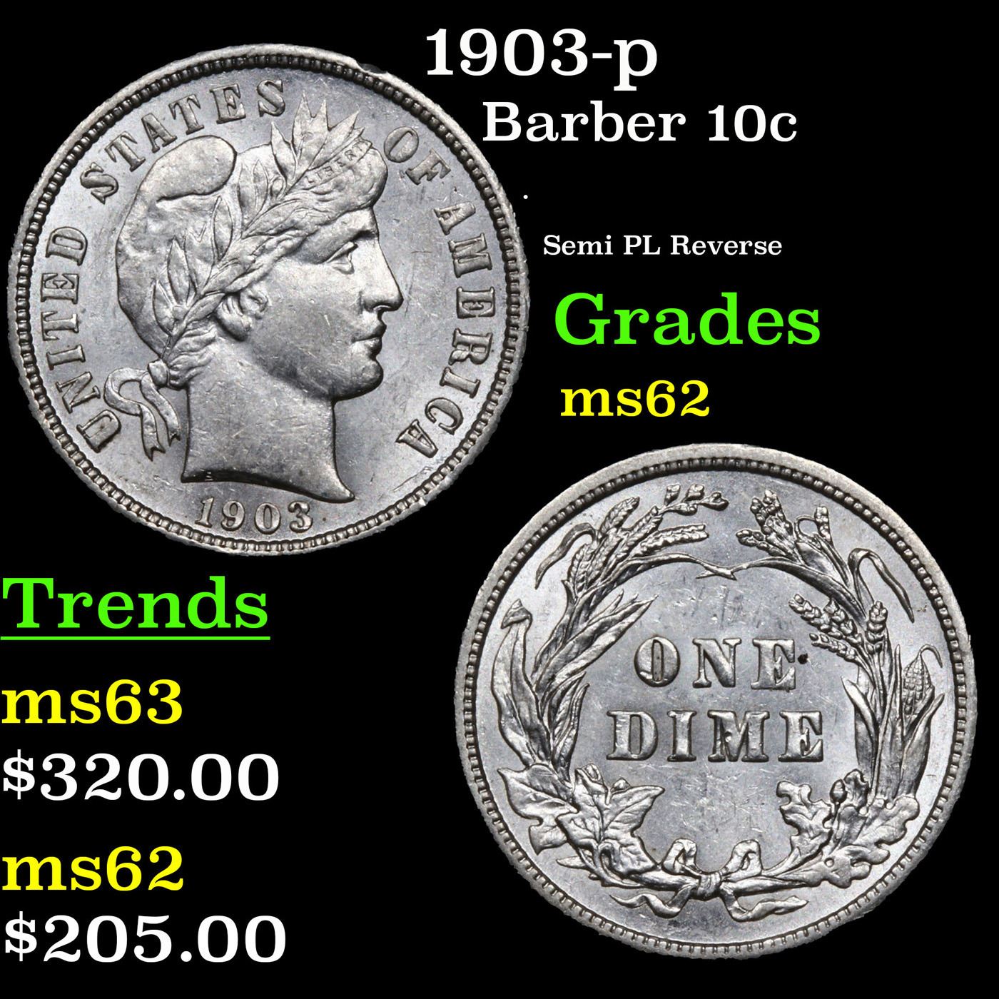 1903-p Barber Dime 10c Grades Select Unc.