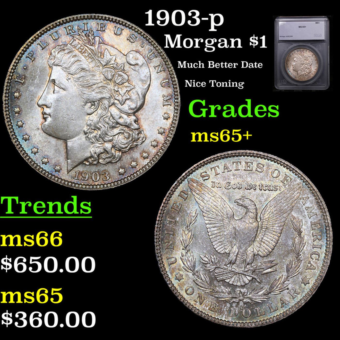 1903-p Morgan Dollar $1 Graded ms65+ BY SEGS.
