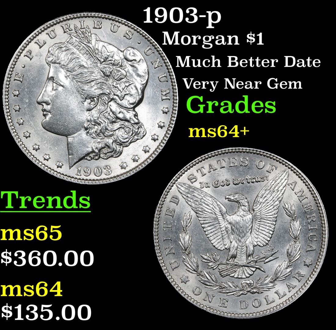 1903-p Much Better Date Very Near Gem Morgan Dollar $1 Grades Choice+ Unc.