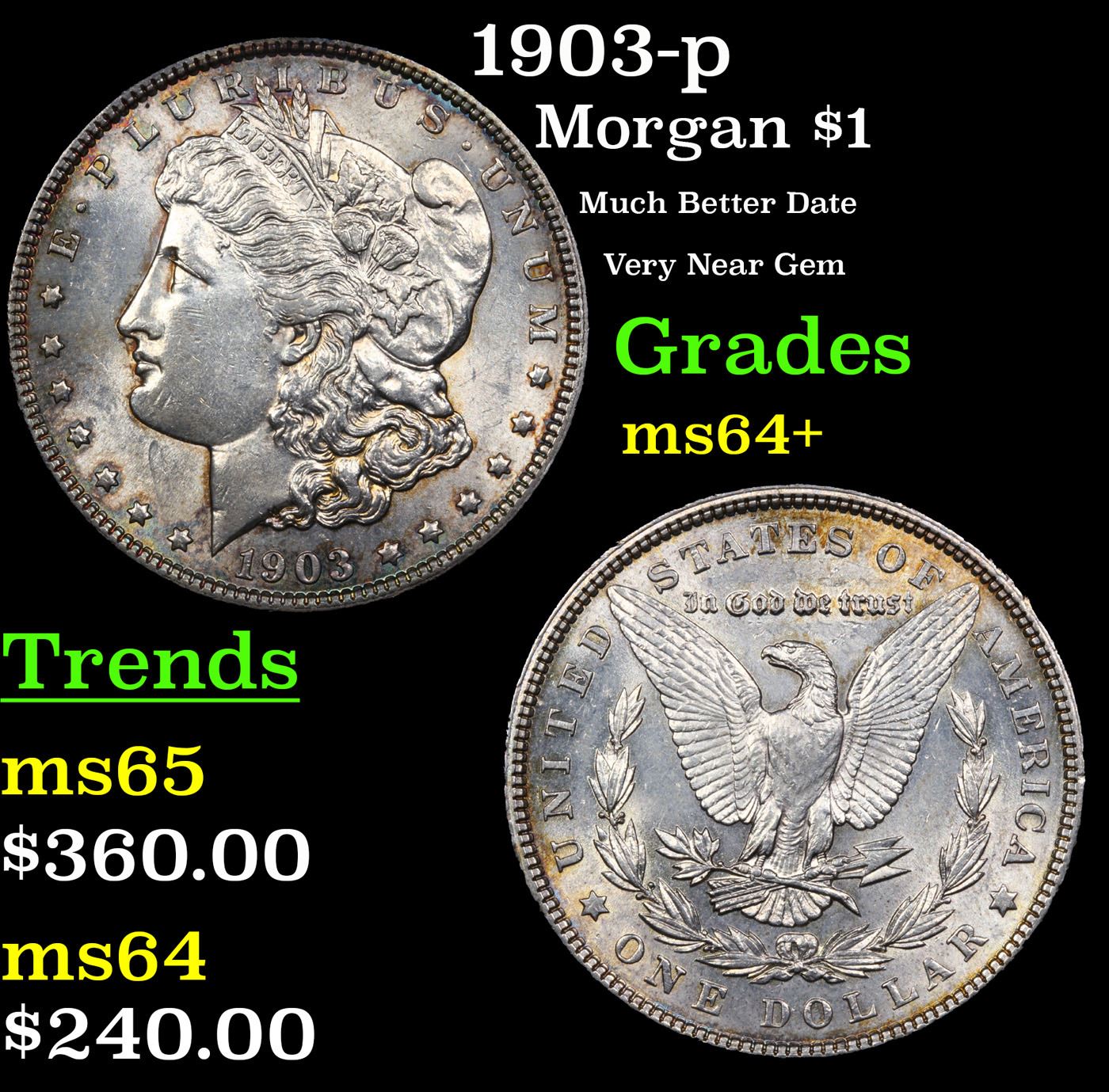 1903-p Morgan Dollar $1 Grades Choice+ Unc.