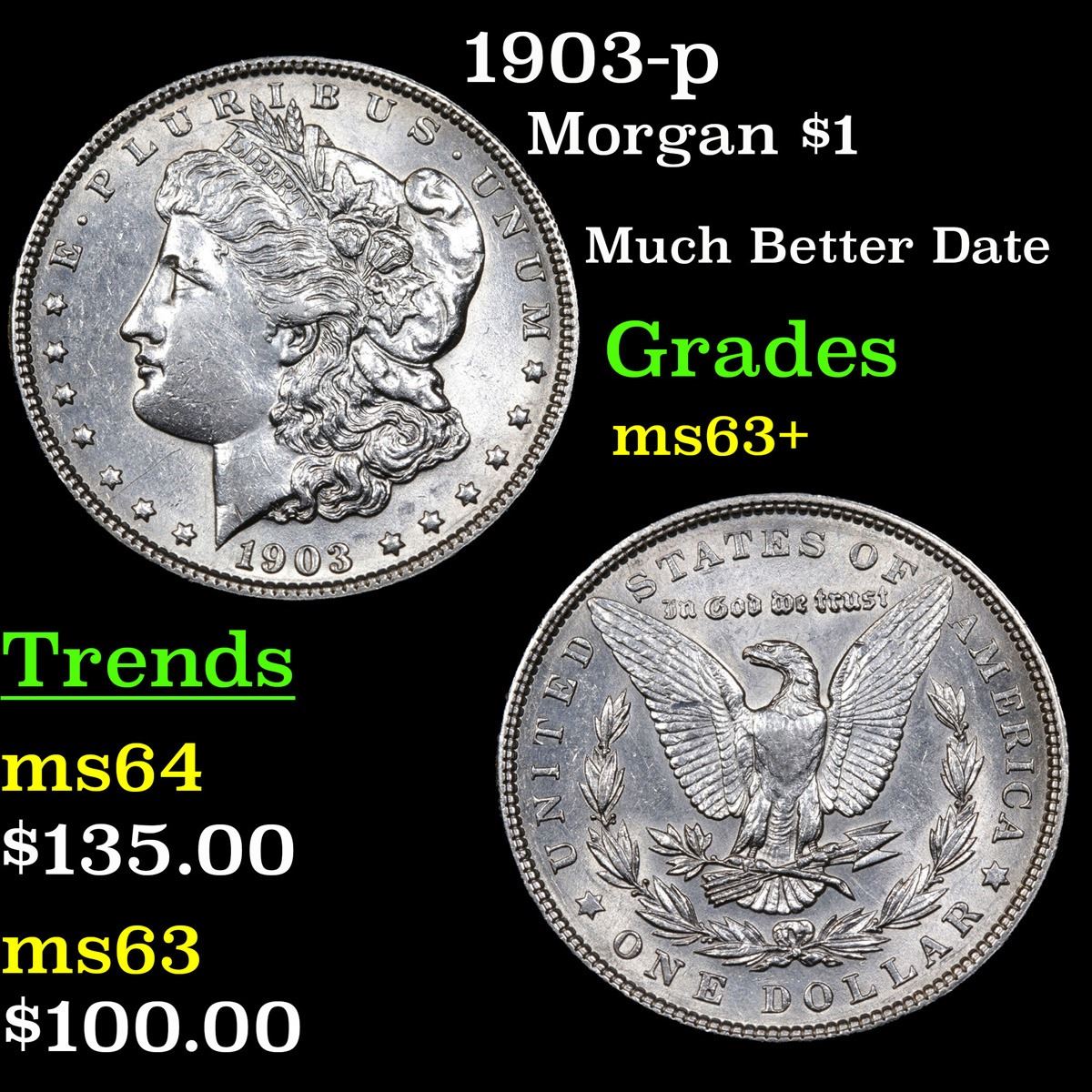 1903-p Much Better Date . Morgan Dollar $1 Grades Select+ Unc.
