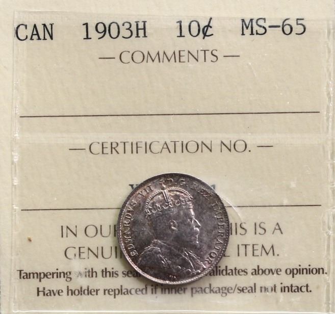 1903H 10¢ ICCS Gem Mint State-65 Attractive gold and russet tones over full underlying lustre