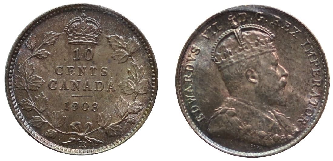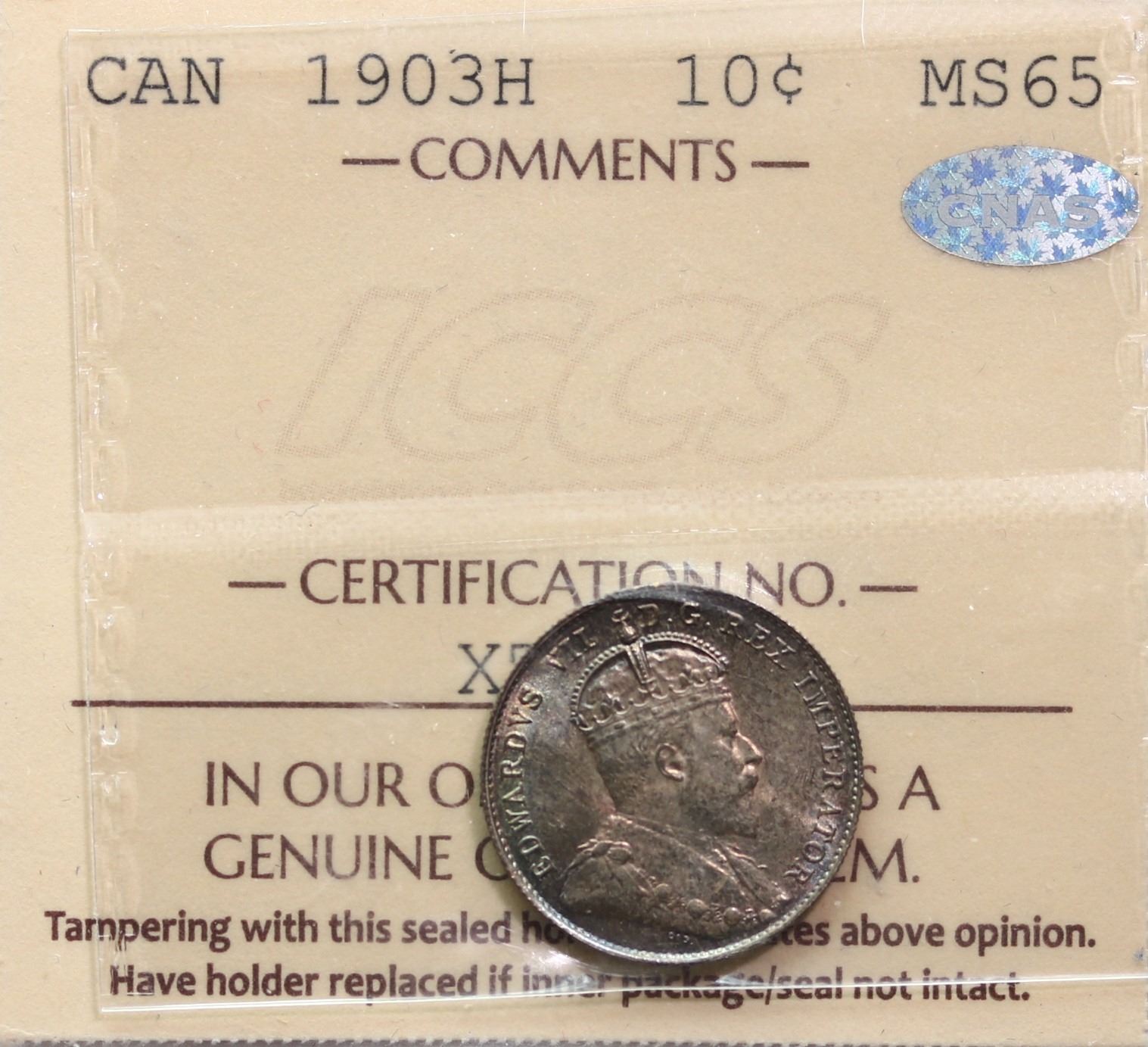 1903H 10¢ ICCS Gem Mint State-65 (GNAS sticker) Well struck with superb autumn shades over full underlying lustre. A must see!
