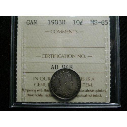 1903H 10¢ ICCS MS65. Brownish and bluish tint gives this example great eye appeal. A lovely GEM example.
