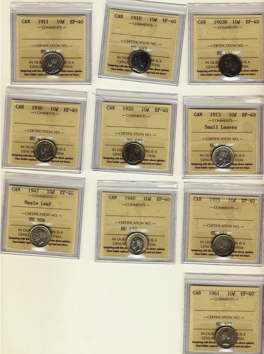 1903H, 1910, 1911, 1913 Sml Lvs, 1920, 1930, 1935, 1940, 1947 ML & 1961 EF40. Lot of 10 coins all ICCS EF40.