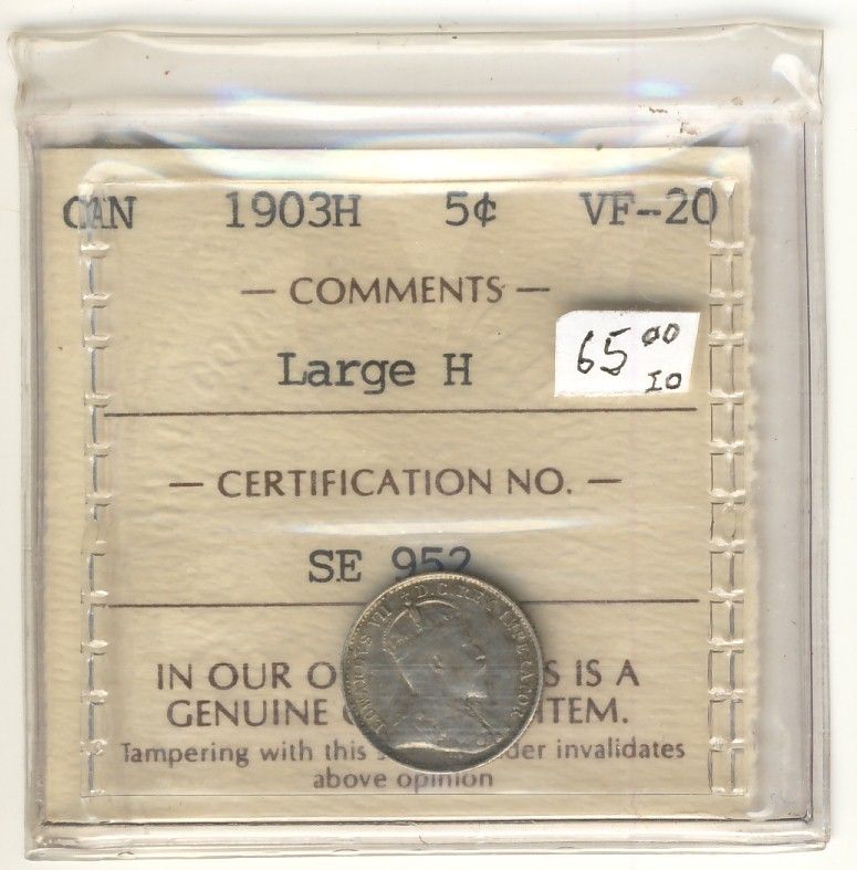 1903H 5¢ Lg H ICCS VF20.