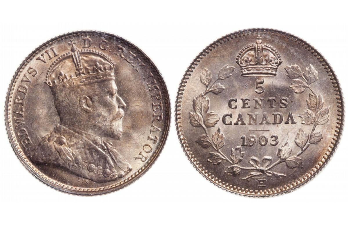 1903H 5¢ Sml H ICCS MS65. Gem eye appeal with shade of gold to pink.