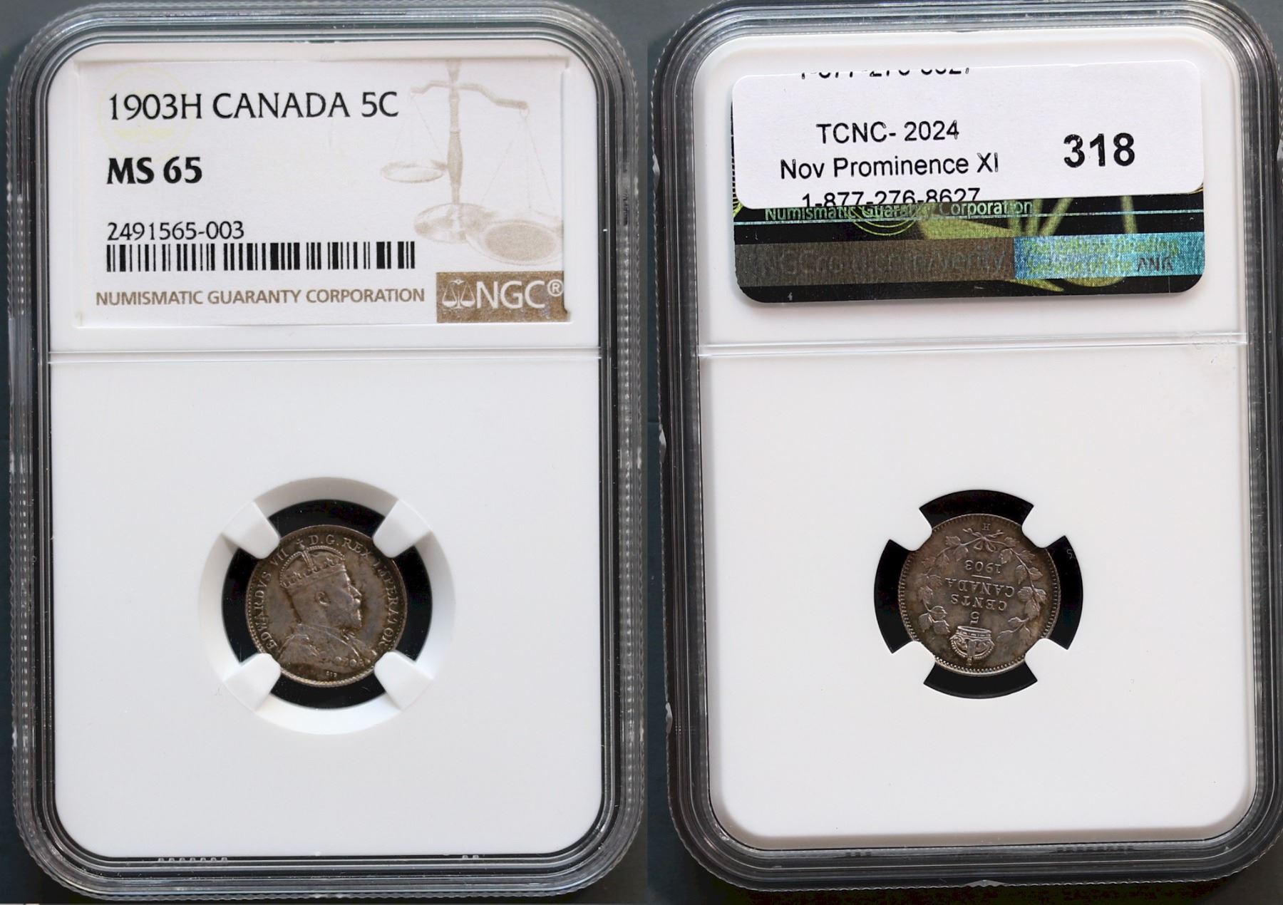 The cataloguer has taken every reasonable measure to ensure that all of the lots in this sale are as described and genuine. All raw coins and banknotes have been graded by the cataloger or the auction house which represent our best professional opinion. To grade coins and banknotes, we use Canadian grading standards, 42 years of experience and good conscience. However, grading is a subjective description in the opinion of the cataloger or the auction house. Among experts there are often differences of opinion on the grading and the eye appeal of a coin. The strike and the state of preservation are often debated. The Canadian Numismatic Company acts as an agent between consignors and buyers. The Canadian Numismatic Company does not guarantee that any coin or banknote cataloged will meet the standards, or the grade, of any third party grading companies. No warranty, whether impressed or implied. Items are as is, no warranty given. We cannot accept responsibility and waive all liability resulting in financial losses, and or incidentals accruing from the sale of any items, nor can we guarantee that items graded by third party services will grade the same if submitted to a different grading service or re-submitted to the same company. Statements by The Canadian Numismatic Company regarding the condition, the eye appeal, the strike and the population of items are for guidance only. All lots offered are sold "AS IS". Title to all lots remains with the auction house until paid for in full by the purchaser. But they are held at the risk of the purchaser once the time of the sale.