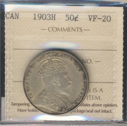 1903H 50¢. Another nice problem free Edwardian example designated as ICCS VF20