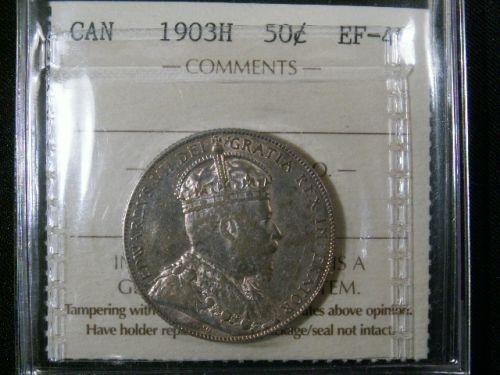 1903H 50¢ ICCS EF40. A nice above average graded example for the everyday collector. An undamaged sharp looking piece.