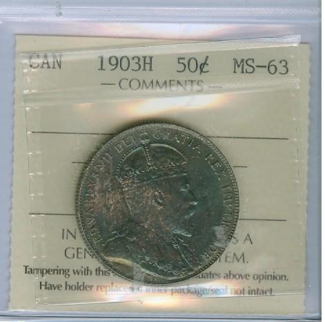 1903H 50¢ ICCS MS63. PQ toning and lustre. Should be viewed.