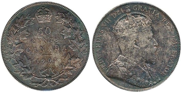 1903H 50¢ ICCS MS63. Strong lustre through sparse red and greens.