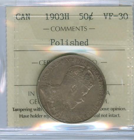 1903H 50¢ ICCS VF-30. (polished). Medium heavy toning. Lot of two (2) coins.