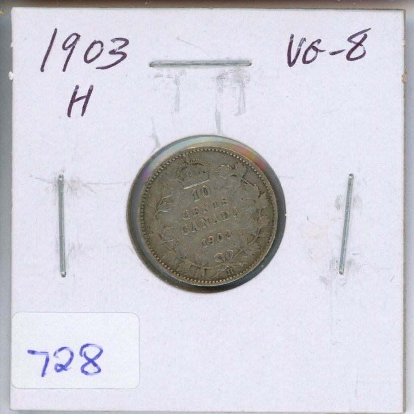 1903H Canadian Silver 10 Cents. Heaton Mint. VG-8.