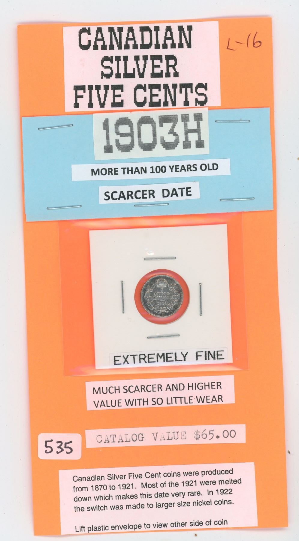 1903H SILVER 5 CENT- EXTREMELY FINE CATALOG $65.00