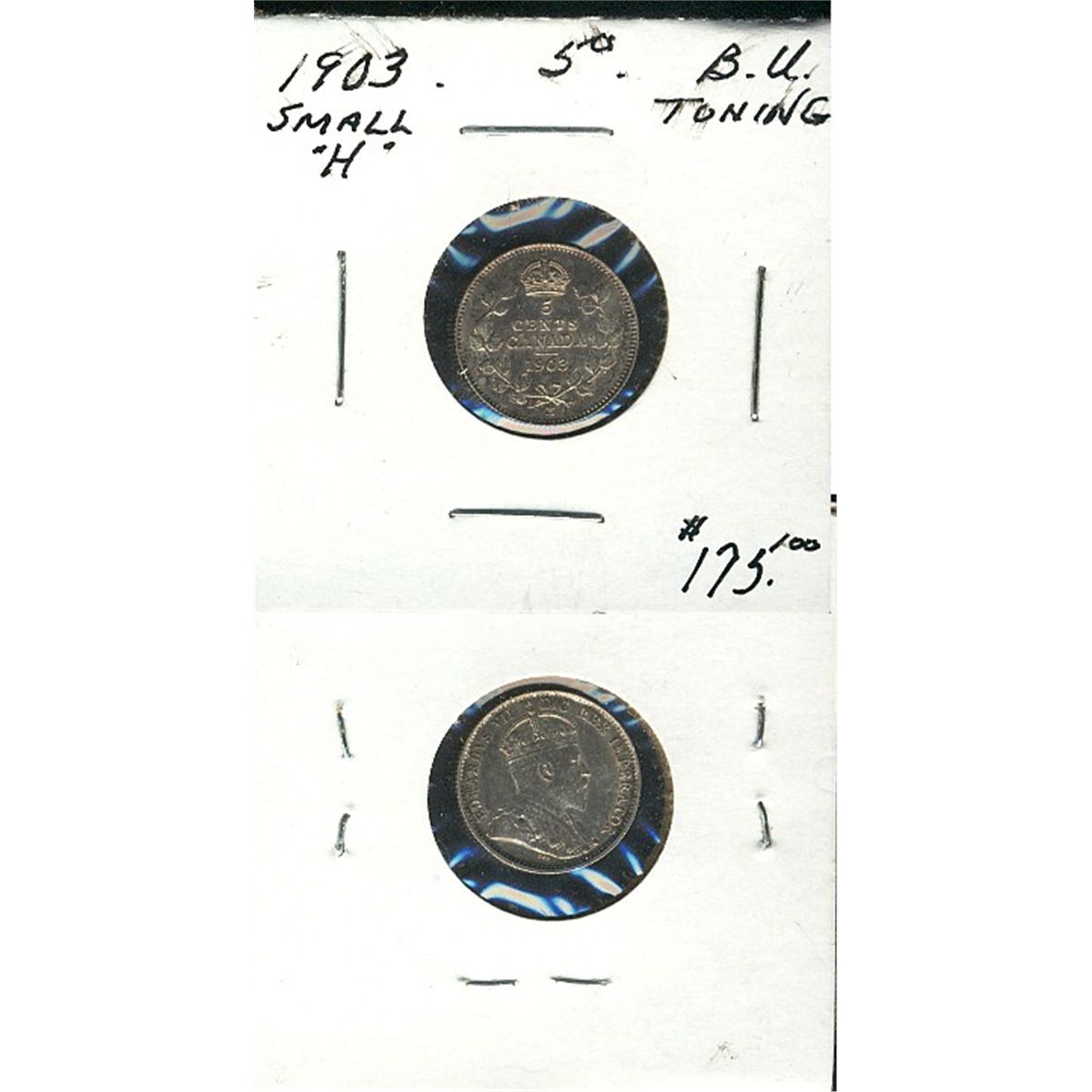 1903H Sm H 5¢ BU. Nicely toned issue. (PBA).