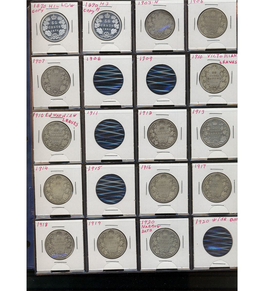 1903H to 2008 50¢ Set. Incomplete date set, missing all key dates and no duplicates. Good to UNC. Does include replica strikes of 1870, 180H & 1921. Includes 55 silv pcs & 49 nickel pcs.