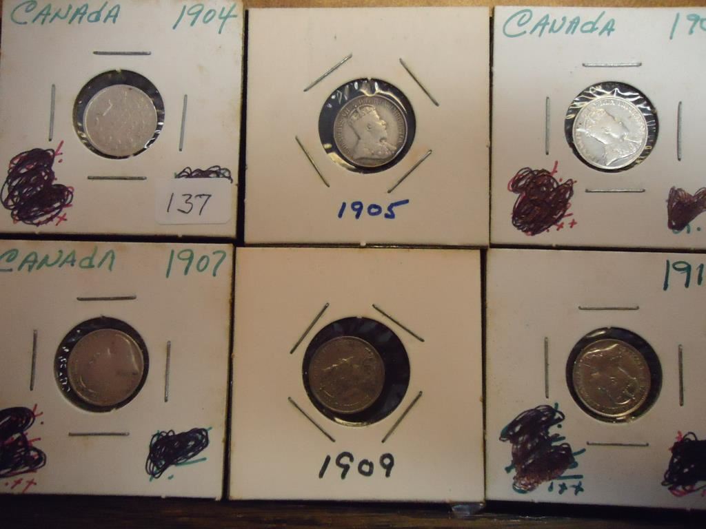 1904,05,06,07,09 & 10 CANADA SILVER 5 CENTS