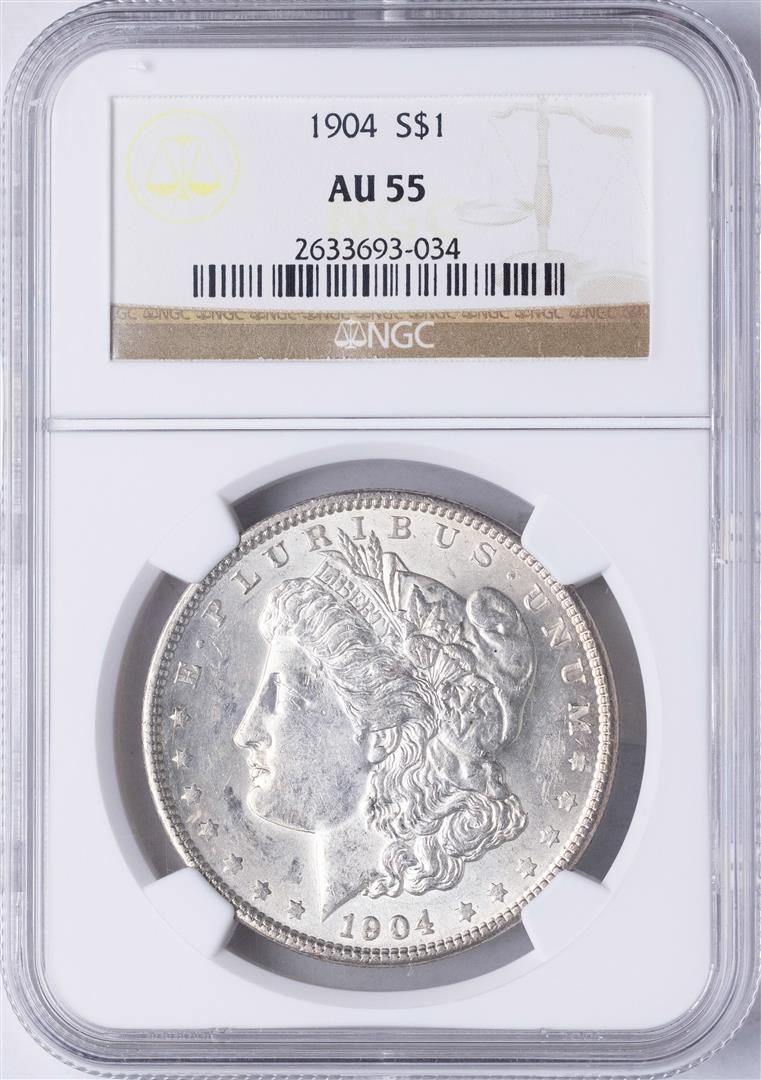 One 1904 $1 Morgan Silver Dollar Coin NGC AU55. NGC Certified.