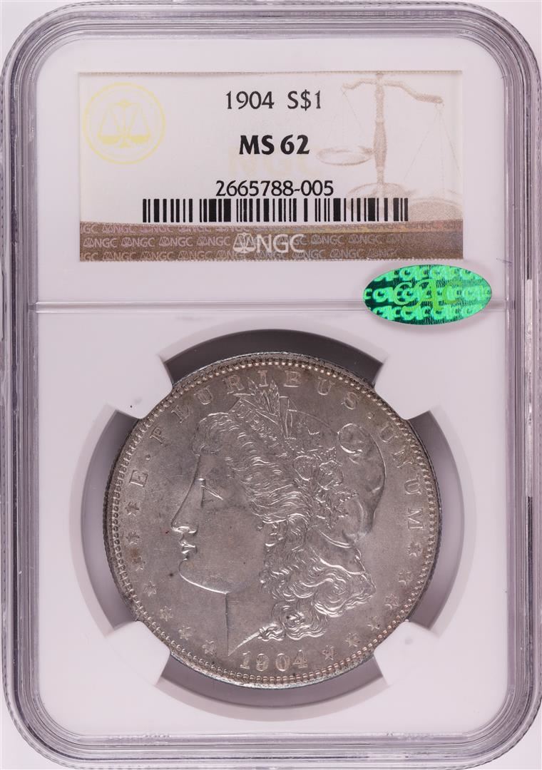 One 1904 $1 Morgan Silver Dollar Coin NGC MS62 CAC. NGC Certified.