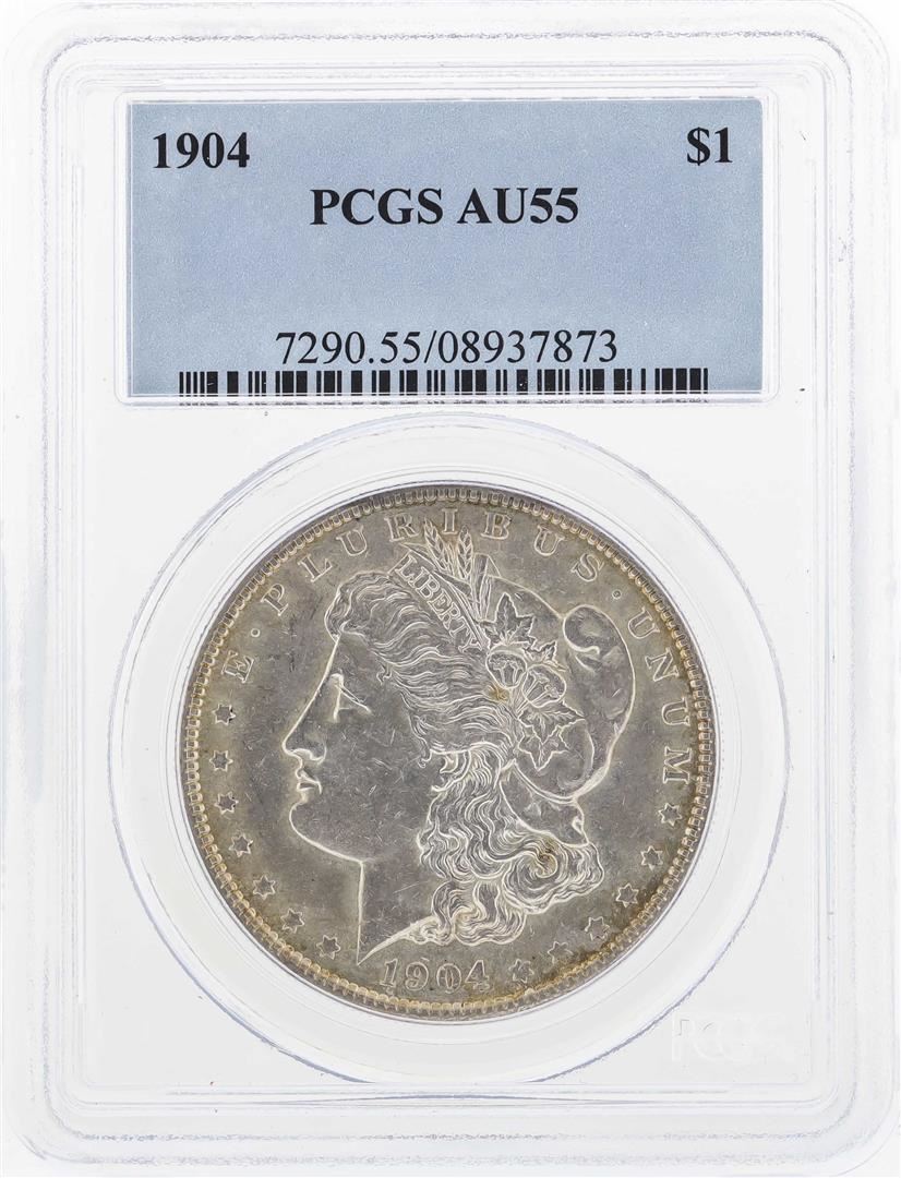 One 1904 $1 Morgan Silver Dollar Coin PCGS-AU55. PCGS Graded.