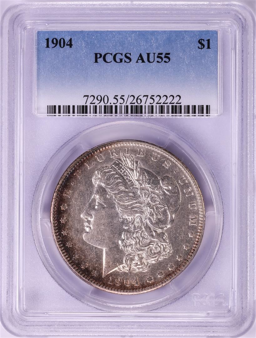 One 1904 $1 Morgan Silver Dollar Coin PCGS AU55. PCGS Graded.
