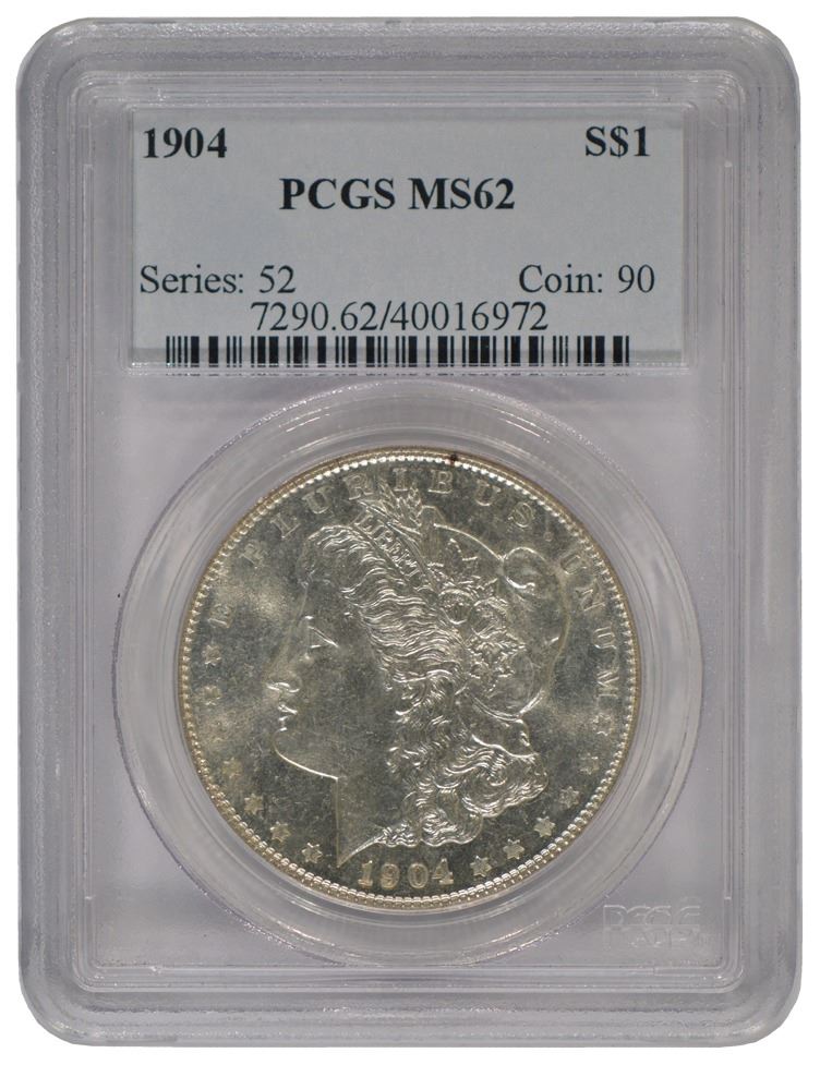 One 1904 $1 Morgan Silver Dollar Coin PCGS MS62.