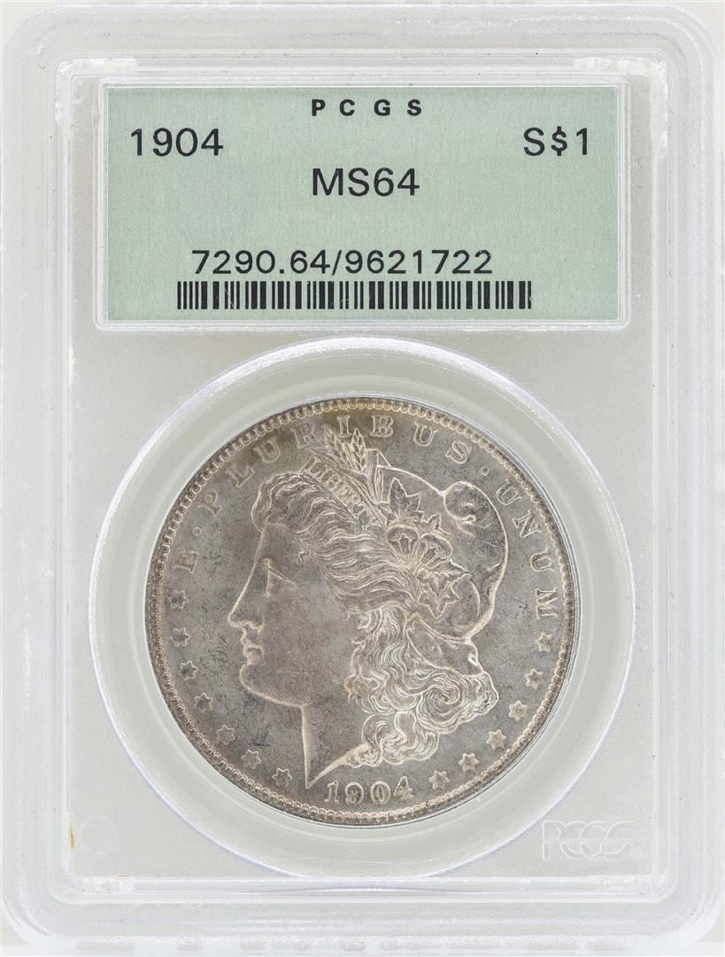 One 1904 $1 Morgan Silver Dollar Coin PCGS MS64. PCGS Graded.