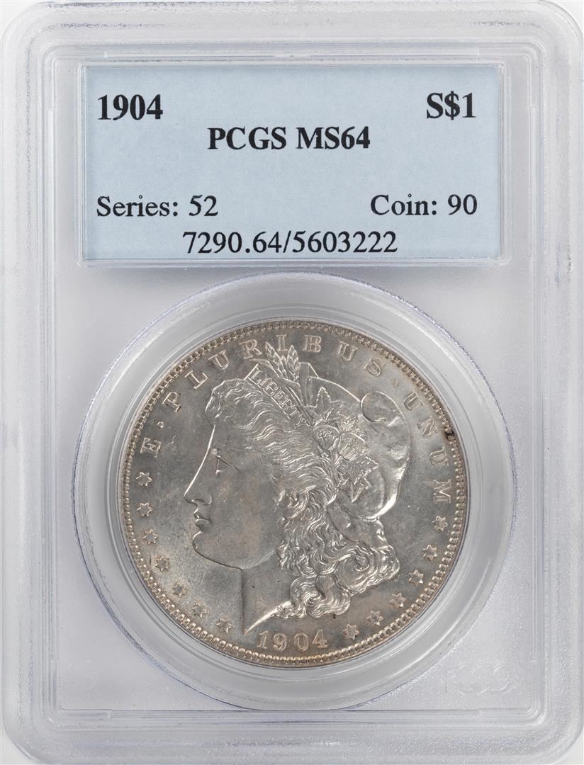 One 1904 $1 Morgan Silver Dollar Coin PCGS MS64. PCGS Graded.