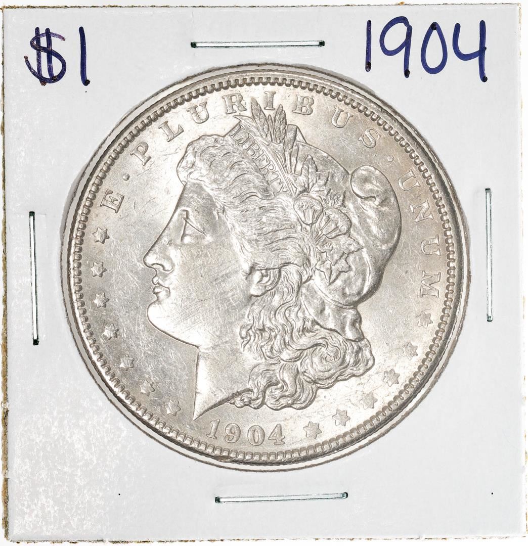 One 1904 $1 Morgan Silver Dollar Coin.