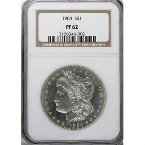 <B>1904 $1 PR62 NGC.</B></I> A delightful proof with deeply mirrored fields and reflective devices. Struck during a period when cameo contrast was discouraged inside the Mint.<BR><BR><B>Coin Engraver:</B> George T. Morgan<BR><BR><b>Shipping:</b> Coins & Currency (<a target="_blank" href="http://www.heritageauctions.com/common/shipping.php">view shipping information</a>)