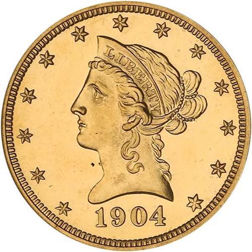 The Philadelphia Mint struck 108 proofs, but the survival rate seems to be low in proportion to some other dates with similar mintages. Few have been certified, this coin being a very respectable middle-grade specimen. The fields are deep, swirling pools of reflectivity, while the devices on each side show the pleasing satiny effect from frost on the dies. An excellent opportunity to acquire the a choice 1904 Proof eagle without having to pay two or three times the price for a Proof 65 or 66 of this low mintage date.