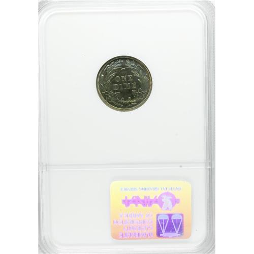 1904 10C PR65 NGC. Deep sea-green and violet toning ad