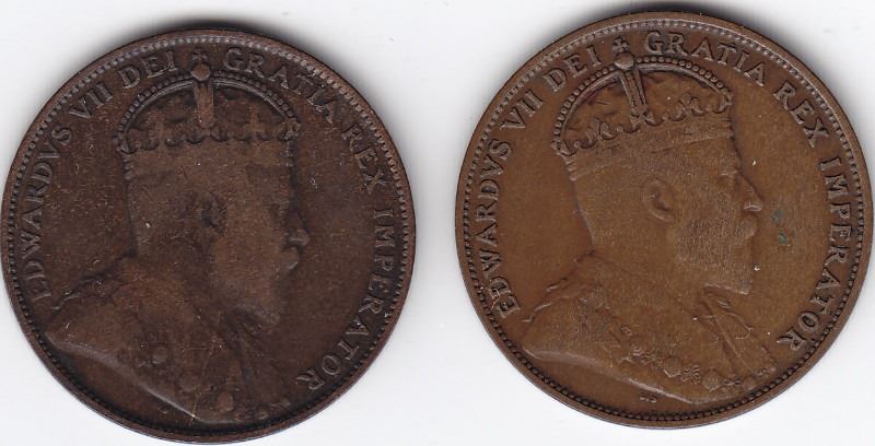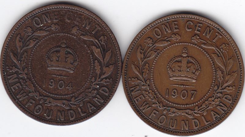 1904 & 1907 Newfoundland Canada One Cent Coins -Both VF Condition - Better Years