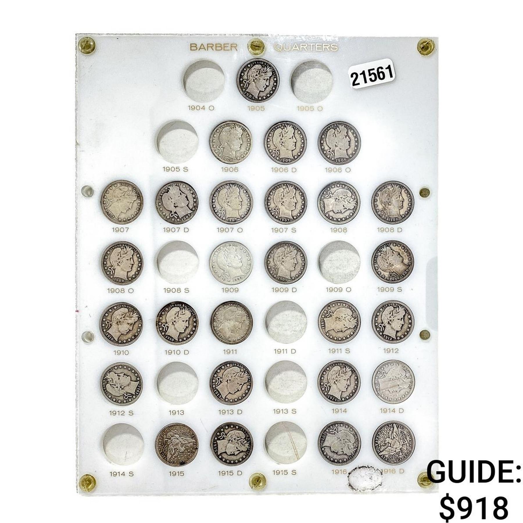 1904-1916 Barber Quarter Set Case 27 of 37 Coins