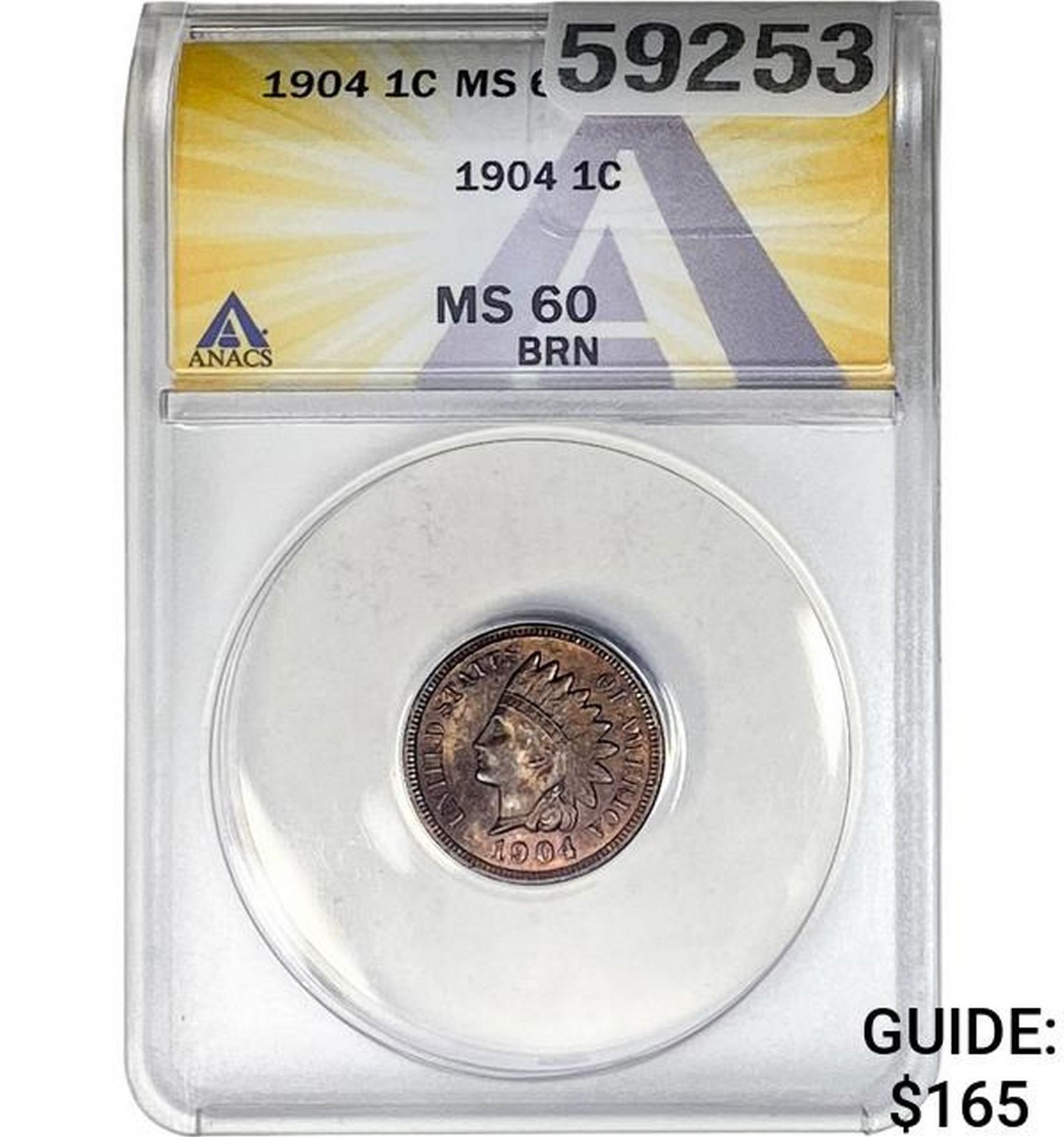 1904 1C Indian Head Cent ANACS MS60 BRN