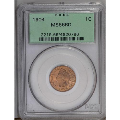 <B>1904<1C> MS66 Red PCGS.</B></I> Outstanding luster marks this sharply struck red-orange cent. Housed in a green label holder. Population: 47 in 66 Red, 5 finer (7/06).