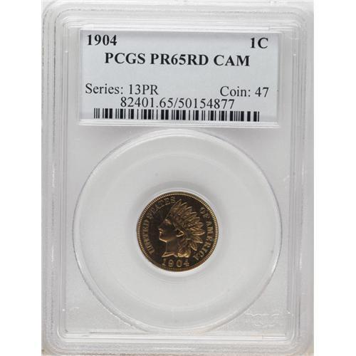 <B>1904 1C PR65 Red Cameo PCGS.</B></I> This bright yellow-gold example is accented with blushes of orange, and displays an unfathomable depth to the mirrored fields that establish a pronounced contrast with the impressively defined motifs. A few tiny flecks are mentioned for complete accuracy. Population: 5 in 65 Red Cameo, 3 finer (1/07).<BR><BR><b>Shipping:</b> Coins & Currency (<a target="_blank" href="http://www.heritageauctions.com/common/shipping.php">view shipping information</a>)