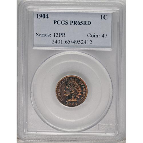 1904 1C PR65 Red PCGS. Fully struck with deep, watery