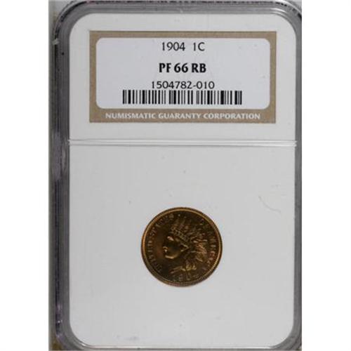 <B>1904 1C PR66 Red and Brown NGC.</B></I> A splendid, deeply mirrored proof striking. The surfaces show a blend of light orange-red with lime green over each side. Essentially defect-free. Census: 7 in 66, 1 finer (8/07).<BR><BR><B>Coin Engraver:</B> James B. Longacre<BR><BR><b>Shipping:</b> Coins & Currency (<a target="_blank" href="http://www.heritageauctions.com/common/shipping.php">view shipping information</a>)