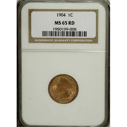 <B>1904 1C MS65 Red NGC.</B></I> NGC Census: (115/26). PCGS Population (182/55). Mintage: 61,328,016. Numismedia Wsl. Price for NGC/PCGS coin in MS65: $420. (#2219)<BR><BR><B>Coin Engraver:</B> James B. Longacre<BR><BR><b>Shipping:</b> Coins & Currency (<a target="_blank" href="http://www.heritageauctions.com/common/shipping.php">view shipping information</a>)
