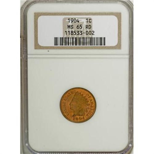 <B>1904 1C MS65 Red NGC.</B></I> NGC Census: (116/26). PCGS Population (185/55). Mintage: 61,328,016. Numismedia Wsl. Price for NGC/PCGS coin in MS65: $460. (#2219)<BR><BR><B>Coin Engraver:</B> James B. Longacre<BR><BR><b>Shipping:</b> Coins & Currency (<a target="_blank" href="http://www.heritageauctions.com/common/shipping.php">view shipping information</a>)
