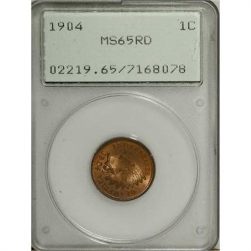 <B>1904 1C MS65 Red PCGS.</B></I> PCGS Population (179/54). NGC Census: (113/26). Mintage: 61,328,016. Numismedia Wsl. Price: $420. (#2219)<BR><BR><B>Coin Engraver:</B> James B. Longacre<BR><BR><b>Shipping:</b> Coins & Currency (<a target="_blank" href="http://www.heritageauctions.com/common/shipping.php">view shipping information</a>\)