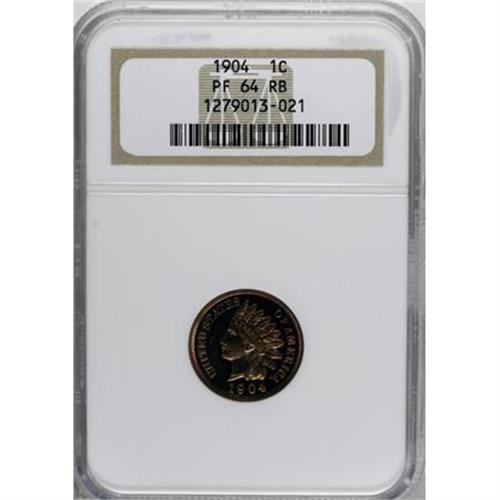 <B>1904 1C PR64 Red and Brown NGC.</B></I> NGC Census: (42/52). PCGS Population (75/31). Mintage: 1,817. Numismedia Wsl. Price for NGC/PCGS coin in PR64: $224. (#2400)<BR><BR><B>Coin Engraver:</B> James B. Longacre<BR><BR><b>Shipping:</b> Coins & Currency (<a target="_blank" href="http://www.heritageauctions.com/common/shipping.php">view shipping information</a>)