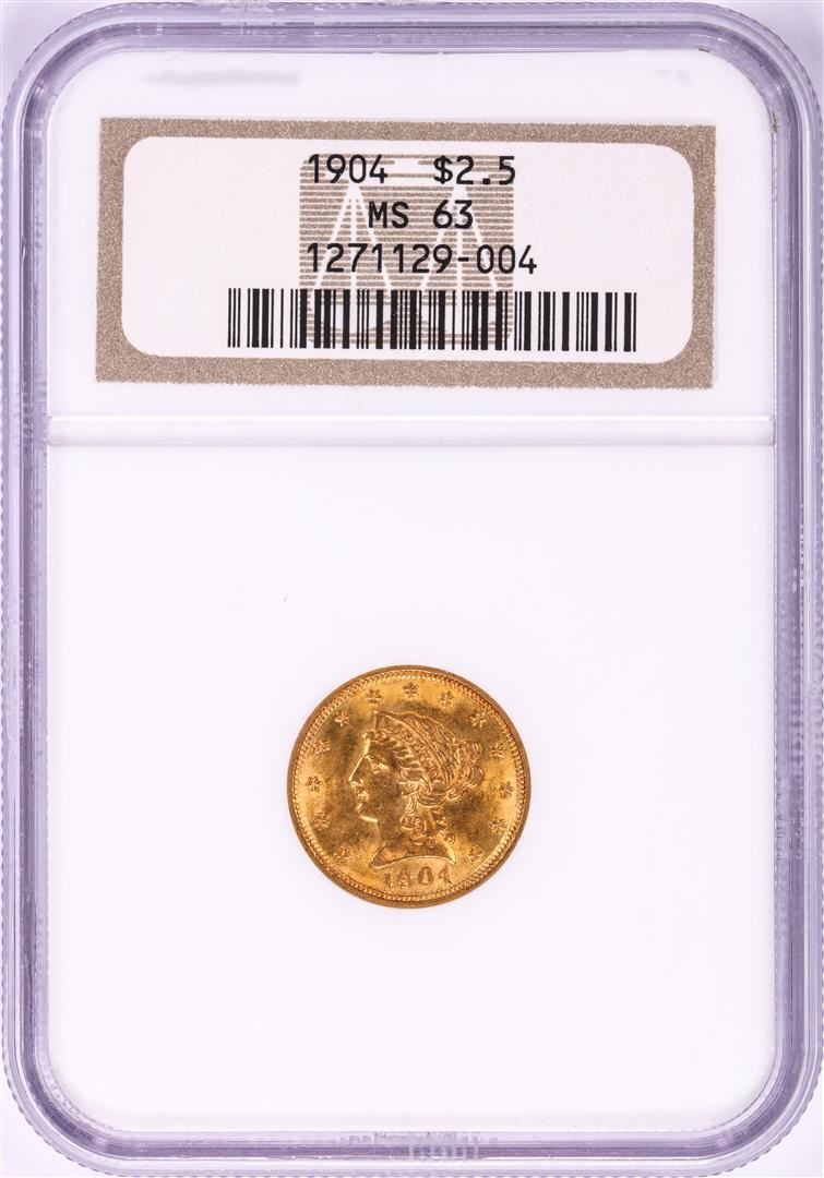 One 1904 $2 1/2 Liberty Head Quarter Eagle Gold Coin NGC MS63. NGC Certified.