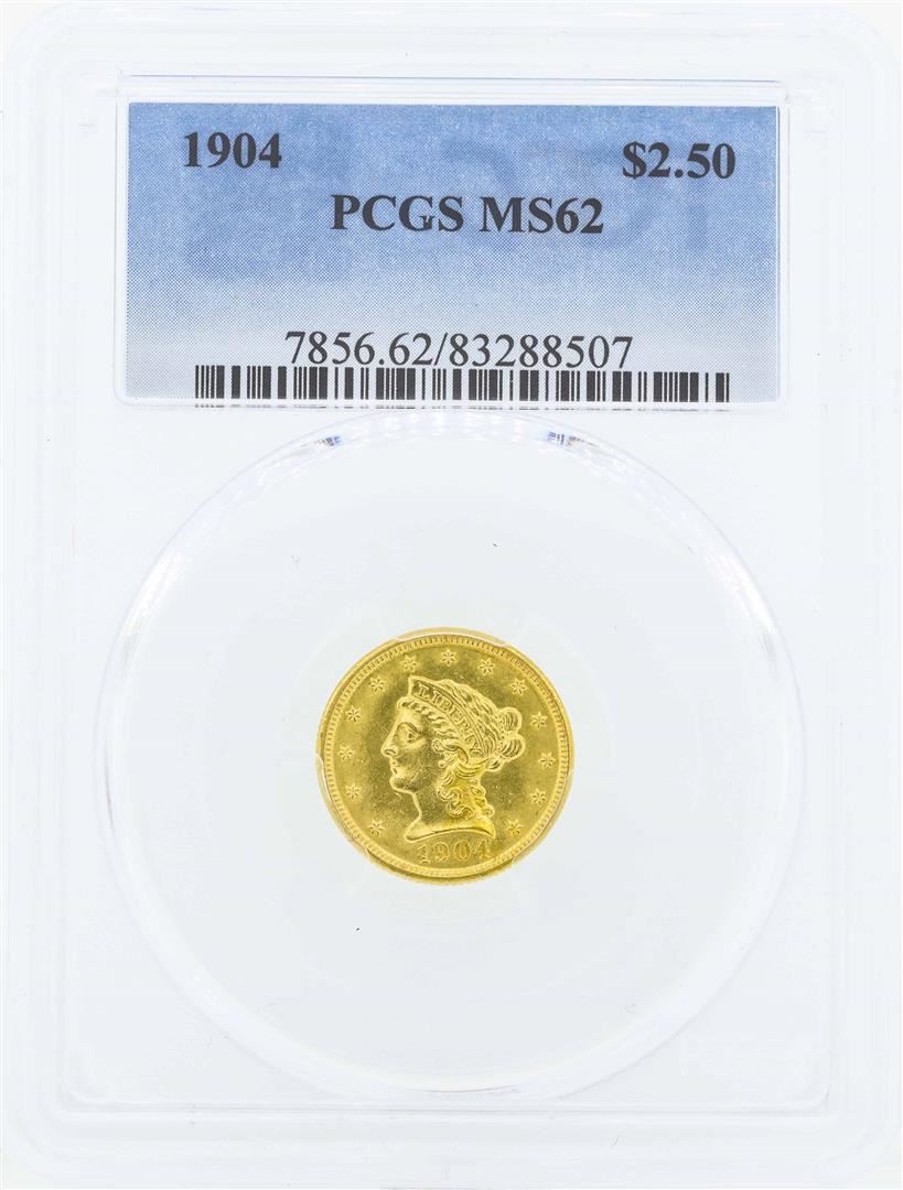 One 1904 $2 1/2 Liberty Head Quarter Eagle Gold Coin PCGS MS62. PCGS Graded.