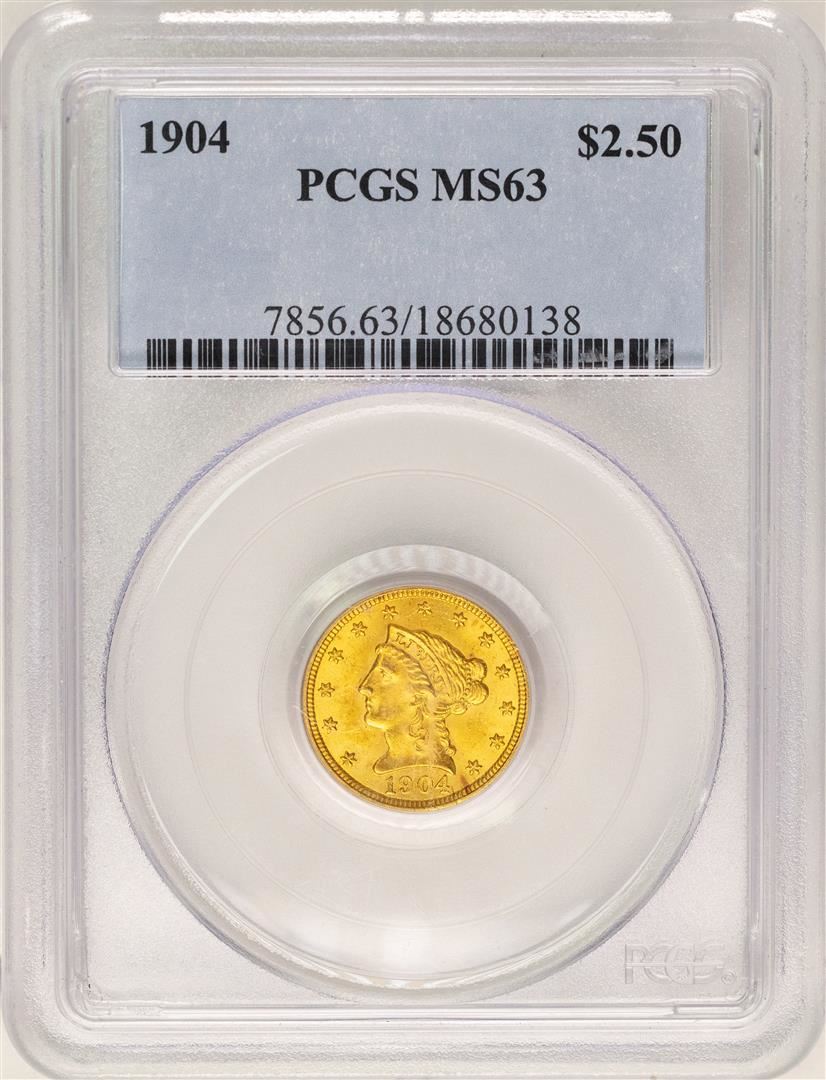 One 1904 $2 1/2 Liberty Head Quarter Eagle Gold Coin PCGS MS63. PCGS Graded.