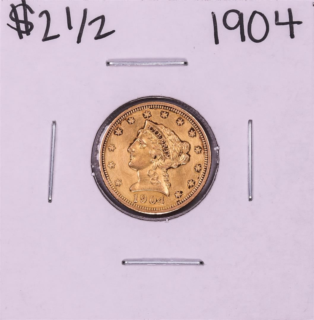 One 1904 $2 1/2 Liberty Head Quarter Eagle Gold Coin.