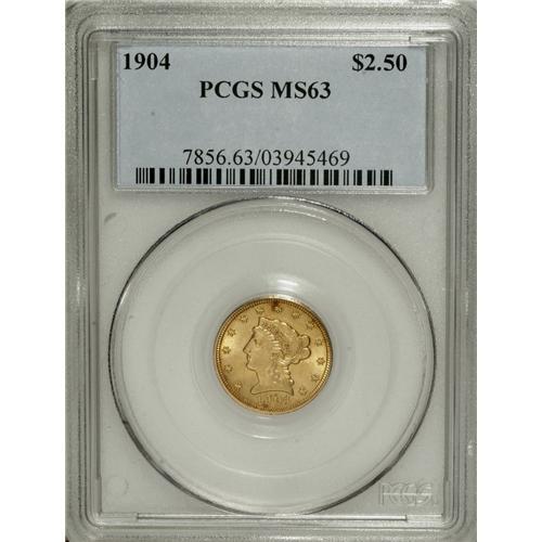 1904 $2 1/2 MS63 PCGS. Lustrous and unusually attracti