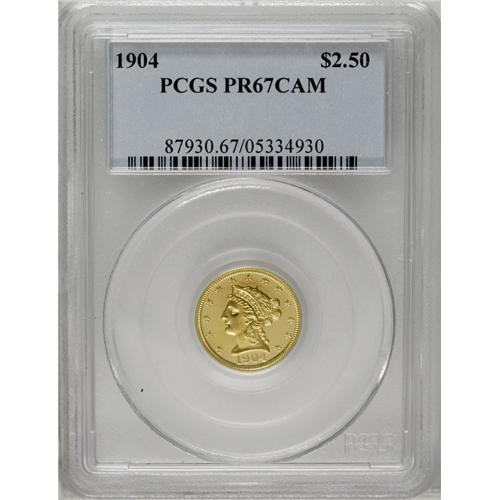 1904 $2 1/2 PR67 Cameo PCGS. A fabulous, high grade ex 1904[$2 1/2] PR67 Cameo PCGS.